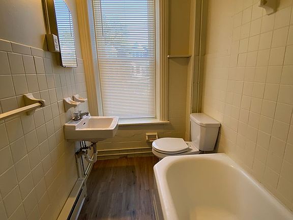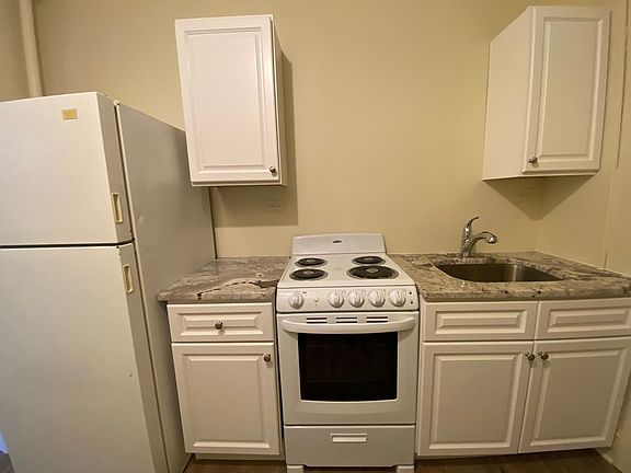 Love this remodeled apartment on the 2nd floor. Upon walking in an auto senor light illuminates the hallway. New plank flooring throughout, fresh crisp paint. Full tub, toilet, sink, mirror and oversized window. The bedroom is carpeted, electric baseboard heater, hall closet, kitchen includes refrigerator, electric stove, new granite countertops and deep sink. There is a 2nd entry door leading to fire escape.