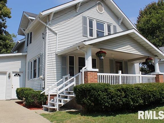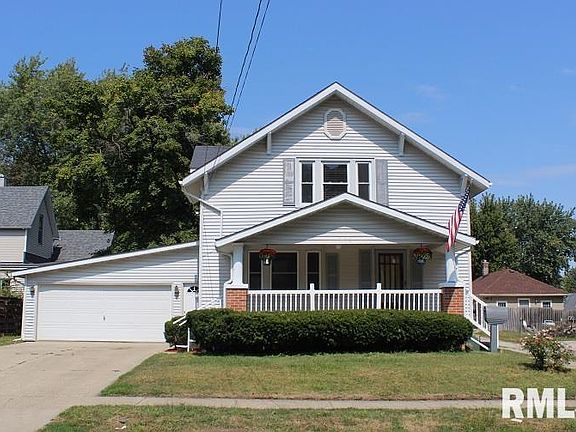 Relax and enjoy your favorite drink on the spacious covered porch of this nice 3 -bedroom, 1 bath home with attached 2 car garage located right around the corner from a nice park with playground and splash pad. The main floor features a spacious living room and dining room, a cozy kitchen with wood cabinetry and a stove and refrigerator that stays, plus a rear family room with gas fireplace. The partial open staircase leads to the second floor with 3 bedrooms that have nice-sized closets and an updated bath with tub/shower combination, pedestal sink & stool plus a makeup vanity with plenty of nice storage for bath items. The laundry is in the basement. Two pane vinyl windows and lots of natural wood flooring. Per owner: New roof in 2016, new water heater 04-26-2024 and new furnace and central air 2015.