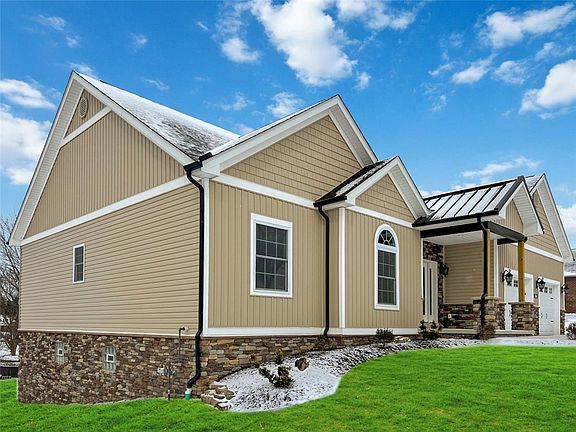 Beautiful newly built custom ranch with tons of upgraded amenities and full walk-out basement by Royal Penn Homes. House features 3 bedrooms, 2 full bathrooms with ceramic tile showers, and a stylish roman soaking tub. 9 ft ceilings throughout the main living area and in the basement. Chef's kitchen has soft-close cabinets, quartz counter tops, and a large island with bar seating. House features full hard-coat plastering and has been painted. Living room area has a custom-built stone fireplace. Many oversized widows that allow for lots of natural lighting. Lots of recessed lighting with dimmers. Garage features 2 windows, upgrade doors with windows, openers installed and EV charging station. Huge basement with tall ceilings, 4 windows, led lighting, and full glass double doors for walk-out. Laundry room on main floor. Spacious deck and concrete patio in rear that leads to the perfect back-yard that is great for a pool or a fence for pets. Very close to RT 30 and PA Turnpike. Must see!
