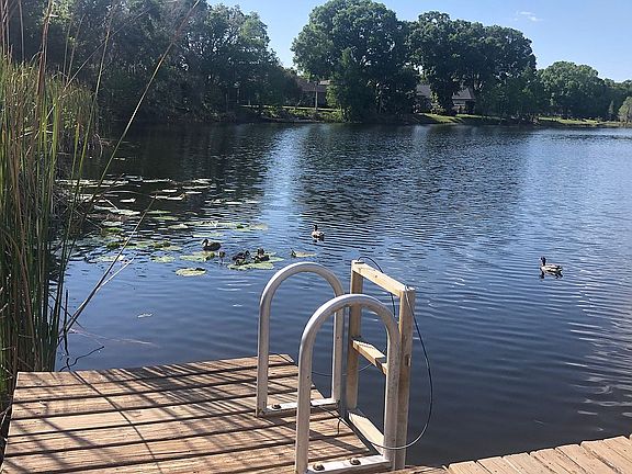 Lutz waterfront pool home on Lake Tiffany w/ 150' of waterfront and a bi-level floating dock. 3 bedrooms, 2 baths, large 2 car garage 24' X 25' with opener and hurricane rated door, attic ladder & extra insulation, storage cabinets. This is a custom built home with many upgrades. Hurricane impact rated windows were replaced on 2006. New roof in 2018. The beauty and tranquility of the fully landscaped lot with its abundant planting beds, lawn, trees, shrubs, bushes, swing, and shed. There is a 16' X 26' vaulted screen enclosed lanai located poolside. It has wood deck floors, a 1/2 bath, and a custom cooking area setup to hold a "green egg" grill. The salt water pool is large, free form, with spa. The propane tank is owned and is included. New filter and salt cell replaced in 2019. Inside, this home features solid wood doors throughout with matching trim, crown molding, and wood blinds. A split bedroom floor plan with a huge great room 26' x 26' with a stone faced wood burning fireplace. The remodeled kitchen features raised panel wood cabinets and quartz counter tops & under cabinet lighting. Many extras are included...Water Treatment System, New water softener installed and serviced by Culligan in 2019. There is programmable landscape lighting, fully fenced pool and yard, programable low volume irrigation system, and built-in window boxes. There’s an open patio, pool cover, huricane protection for the french doors, and much more....