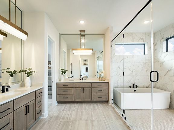 Final opportunities to own a J. Patrick home in the exclusive Deer Lake Estates of Grand Central Park! This TAB Star Award-winning Sabine floor plan features a stunning Romabio-painted brick exterior, split garages, 5 bedrooms, 4.5 baths, and high-end designer finishes. Grand two-story entry with curved staircase, family room with 21’ ceiling and modern fireplace, home office, formal dining, and two bedrooms down. Chef’s kitchen with custom cabinetry, stainless steel appliances, and double ovens. White oak wood flooring, game and media rooms, and a luxe primary suite with wet room—freestanding tub and glass-enclosed shower. Outdoor kitchen, smart home tech, and healthy air features. Lake-view custom home in a premier location.
