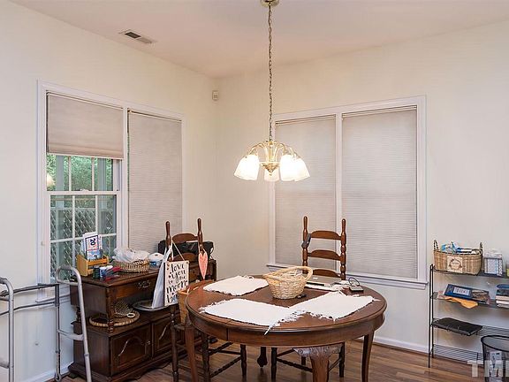 LOCATION! Walk or bike to Southpoint, shopping, I40 Hwy 54 and the dog park. Home office with built in desk and shelves, separate entrance. '97 silver parade of homes winner. Ranch in Crooked Creek with large, open floorplan, with laminate throughout, 3 BR, 2 Bath, fireplace, covered and screened porch, fenced yard (property goes well beyond fence in back) with mature landscaping. storage shed. Convenient to RTP, Cary, Chapel Hill.