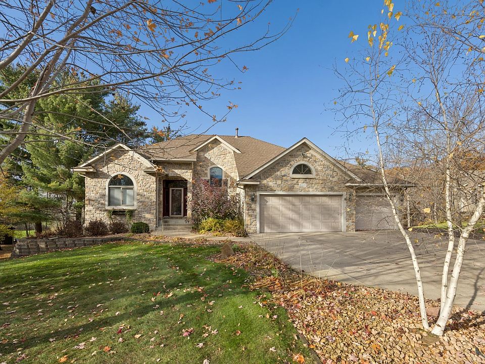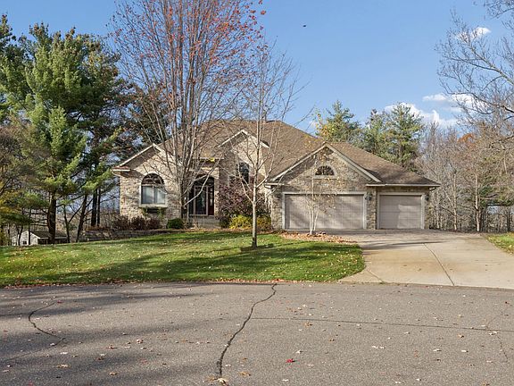 Welcome to your retreat! Beautiful 3+ bdrm rambler nestled on 2 1/2 acres! You’ll love this quality home with many standouts: like the gorgeous brick front, see thru fireplace, central vac and huge primary suite. The high vaulted ceilings, large windows and recessed lighting make your living area bright and light. Enjoy stunning views from your walk-out upper level deck. The huge lower level boasts a walk-out, in-floor heat and offers an abundant space for recreation and entertaining. Also don’t miss the safe room. The cute storage shed has electricity. Other features include underground sprinklers and driveway to backyard. All this on a quiet cul de sac near parks and lakes. You’ll love to call this your home!