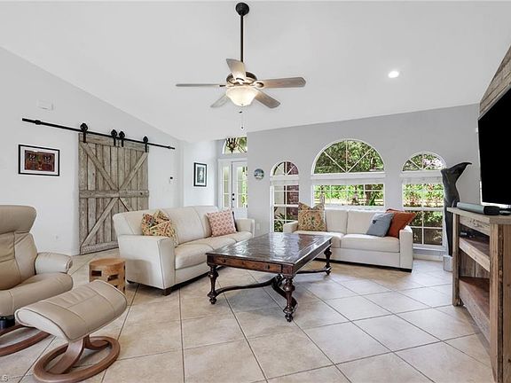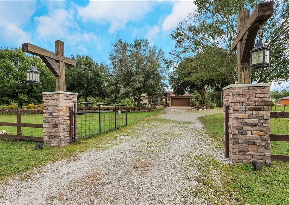Experience the beauty of refined country living in this private 2.27-acre Golden Gate Estates retreat- a gated, fully fenced sanctuary offering timeless elegance, serene pond views, a 2020 roof, and the freedom of NO HOA or restrictions! Step inside this beautifully updated three-bedroom, two-bathroom home featuring an open-concept layout, split-bedroom floor plan, high ceilings, recessed lighting, and tile flooring throughout. Fresh interior paint enhances the light-filled spaces, creating a warm and inviting atmosphere. The custom kitchen is a true showstopper, featuring solid wood cabinetry, quartz countertops, a stylish new backsplash, stainless steel appliances, ample cabinetry, and a spacious pantry for added storage. The garage includes A/C, abundant storage space, a convenient side entrance, and excellent potential for a future guest suite or bonus room. Outside, experience the best of true Florida country living. A gated entrance with an electric gate ensures privacy and peace of mind, while a 100x100 stocked pond surrounded by palm trees creates a serene, picturesque setting. Enjoy the screened lanai with a beautiful wood-beam ceiling and direct access to the guest bath, a rinse off in the private outdoor shower after a day outdoors, or gather around the fire pit under the stars. The barn/workshop is perfect for tools, toys, or hobbies, and the additional patio area offers extra space for entertaining. The cleared front and back yards offer plenty of room to roam, garden, or expand. The property is RV, boat, live-stock friendly (even semi-truck friendly!). The wide lot allows easy access for large vehicles and deliveries—a rare and valuable feature. Whether you’re searching for a peaceful private residence or envisioning a versatile homestead with room to grow, this property offers the perfect combination of tranquility, flexibility, and potential. Perfectly located just minutes from everyday conveniences, this home offers the best of both worlds — peaceful country living with nearby amenities and exciting area growth. Enjoy close proximity to Big Corkscrew Island Regional Park, featuring miles of trails, sports fields, splash pads, and nature adventures, as well as top-rated schools and Ave Maria University. The area continues to thrive with new developments, including the brand-new Publix Plaza (The Shoppes at Orange Blossom) featuring Publix, Starbucks, Tropical Smoothie, Le Nail Salon, Great Clips, 5/3 Bank, and more- along with Ace Hardware, AutoZone, Aldi, Anytime Fitness, Tractor Supply, and new medical offices just minutes away. With its meticulously maintained home, expansive acreage, and exceptional versatility, this move-in-ready home embodies Golden Gate Estates living at its finest. Enjoy the ultimate combination of privacy, freedom, and functionality - all in one stunning property!
