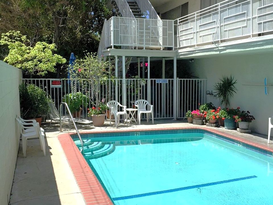 Spacious and charming unit #16. View of trees, garden and the pool. Very quiet, gated entry and driveway. Short distance to Ralph's Market, Starbucks, Metro Subway, Laemmle Theater, Restaurants, Bike at Chandler Path Trail, YMCA and close to Studios and freeways. This unit is located on the 2nd floor with laminate flooring all through out, it includes one parking space. This is a NO SMOKING unit.