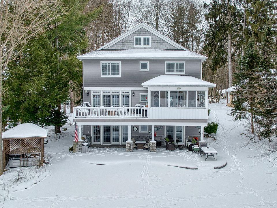 Browns lake charmer. This Nantucket style home is full of high end upgrades. Large kitchen which opens to the living room, provides great views of the lake. Main floor bedroom with double closets and large bathroom with custom shower and tub. The upper level features 4 ample bedrooms with Jack and Jill baths. On the upper most level is an amazing space for an art or hobby studio. The lower walkout level has an amazing bar and rec room, wine cellar and high tech movie theater. There is a bonus ''vault'' room for those precious artifacts or just a cool lounge area. All this sits on a large lot featuring one of the premier lakes in Jackson, situated closest to the downtown or hospital. This All sports lake is waiting to fill your summers with relaxing boat rides or speed boat fun!