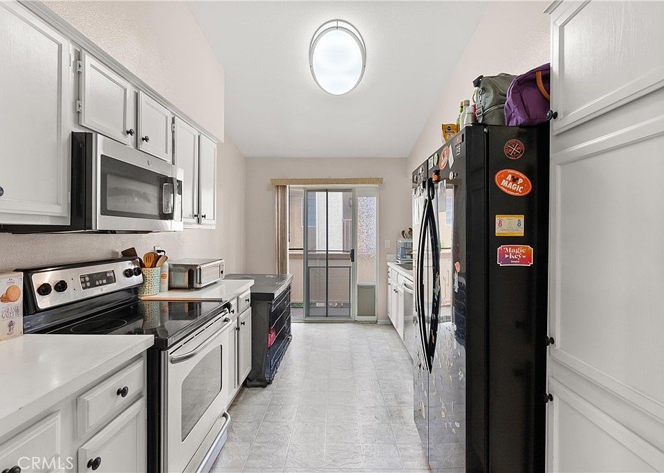 A well-appointed kitchen is equipped with stainless steel appliances, abundant cabinet & counter space, and a breakfast nook, with direct access to the balcony.