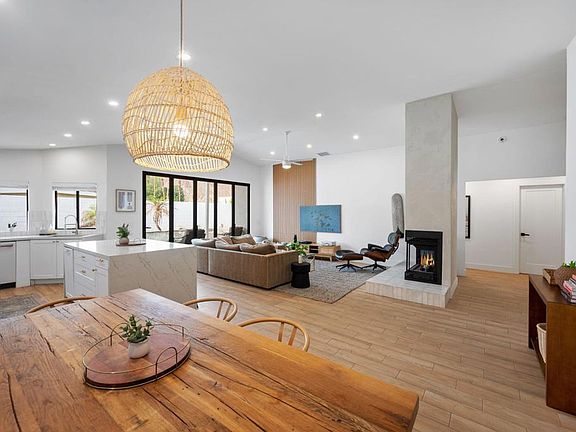 Experience the ultimate desert escape in the heart of La Quinta, where modern luxury and everyday convenience seamlessly come together. This thoughtfully remodeled home showcases an open-concept design with a spacious living room, dining area, and kitchen, all enhanced by sleek tile flooring. The chef-inspired kitchen features premium GE Cafe Series appliances--including a gas stove, refrigerator, dishwasher, and microwave--offering both elegance and efficiency.Smart home features such as a Nest thermostat, Nest Hub displays, and automated lighting provide a connected and comfortable lifestyle. Step outside through expansive 12-foot sliding doors into a private backyard retreat framed by stunning mountain views. Unwind in the updated pool and spa, gather around the wood-burning fire pit, or entertain with the built-in BBQ and easy-care artificial turf. The fully enclosed yard is perfect for children and pets alike.Additional highlights include a two-car garage equipped with Level 2 Tesla/electric vehicle charging. Whether you're hosting friends or seeking quiet relaxation, this La Quinta gem delivers the best of desert living.