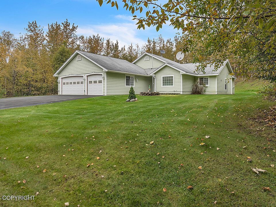 Beautiful ranch home located in Brentwood Estates! 3 bed, 2 ba home w/ a bonus room/office or 4th bedroom. Open floor plan, in floor heat throughout, detached sauna, two large sheds & huge 3 car garage for all your Alaska toys. Plenty of space for RV parking. Large primary suite with private bath & walk in closet. Spacious laundry room w/washer, dryer & sink. New carpet throughout.