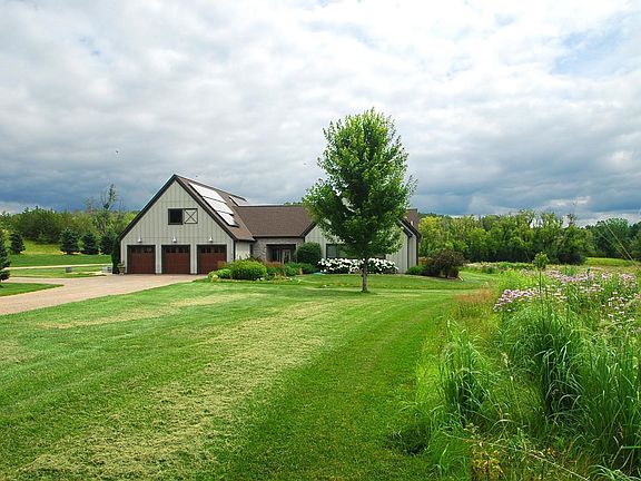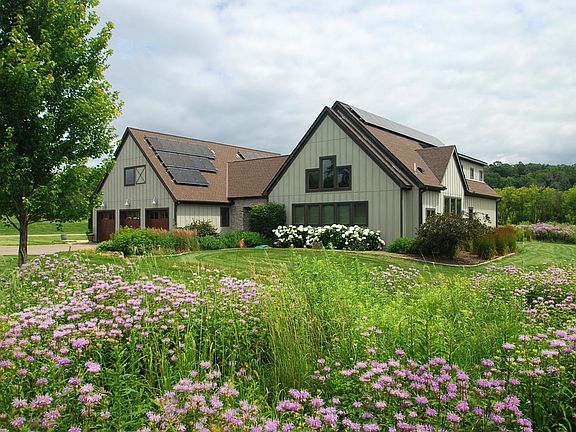 Built by MN's #1 energy efficient builder (AMARIS HOMES) this DOE 2017 National Grand Award-winning home is healthy, safe, durable and comfortable. Set on a fabulous 5-acre lot, this architectural 4BR, 4BA ultra-energy efficient, green-built carriage home offers 2,855 SF of zero-barrier, wheelchair access, main level living with vaulted living room/kitchen, gourmet style chefs' kitchen with new Thermodore Refrigerator / Freezer, walk-in pantry, pocket office, main level master suite, laundry and outdoor living space with pergola. Main floor offers separate private living quarter's w/1BR, 1BA, kitchenette and family room for mother-in-law suite or guests. Large, finished bonus space over the garage with separate entrance, newly carpeted, heated / cooled. 100% of electrical needs of the home are met with the on-site solar system which is backed up with whole house natural gas generator for off grid situations. In floor heat and energy efficient spray foam insulation. Then check out the 40 x 50 outbuilding with in-floor heat, water, gas and electric and houses the most amazing entertaining area just adjacent to the pool area. Get ready to host parties and events in this lofted building with full gourmet kitchen, granite counter tops, high end chefs' appliances, extended current asphalt driveway to the outbuilding. Hot tub and custom stone fire pit adjacent to the pool and accented with an unbelievable amount of custom landscaping, stone walls and walkway throughout the area. Custom Concrete 30 x 50 pool and apron (approx. 2000 sf of stamped / colored concrete) with saltwater system. Professional photography will be completed Friday, July 18. Please view the immense list of updates and additions in the supplements.