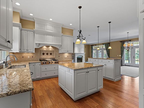 Imagine coming home to this beautifully designed one-story residence at the end of a peaceful cul-de-sac in Copper Chase. As you pull into your 3-car garage and walk up to your covered front porch, you’re welcomed by tall ceilings, custom moulding, and an open layout that instantly feels inviting. Your kitchen becomes the heart of the home—professional-grade appliances, granite countertops, and two spacious islands give you all the room you need for cooking, serving, and gathering. From here, you can enjoy views into your dining areas and your great room, where natural light pours through large windows and a fireplace adds warmth to every season. When it’s time to work or unwind, your office with French doors gives you a quiet space to focus. And at the end of the day, your private suite offers a true retreat with two walk-in closets and a spa-like bath featuring a garden tub, a custom shower, and abundant vanity space. Your main-level laundry room adds everyday convenience. Hosting guests is easy with your own mother-in-law suite, complete with its own kitchen—ideal for extended visits or additional flexibility. Downstairs, your finished basement becomes a destination of its own with a large family room for movie nights, a recreation room, a generous wet bar for entertaining, another bedroom, and a full bath. You’ll also appreciate the storage area, workshop space, and convenient staircase leading right up to the garage. Step outside to your covered back patio, where you can relax while overlooking your expansive patio and spacious backyard. A custom garden shed and beautifully landscaped grounds make your outdoor space both functional and serene. This is a home designed for comfort, convenience, and the kind of everyday living that feels elevated yet relaxed.