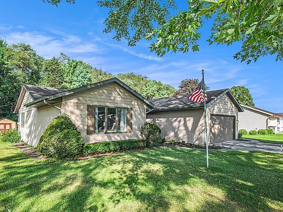Welcome to this inviting open-concept ranch home perfectly located on the Elkhart/Granger line. Nestled on a large lot offering privacy and space, this home features two generously sized bedrooms and two full bathrooms. The main level showcases updated flooring and a seamless flow between the kitchen and living area, creating a bright and spacious feel. Enjoy the convenience of main level laundry complete with a utility sink, and step outside to a covered porch overlooking the private backyard. An open rail staircase leads to a large unfinished basement- ready for your personal touch and endless possibilities. Completing the home is a large two car garage, making this property both comfortable and functional.