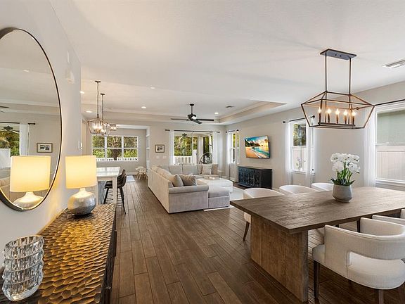 Built in 2018, this thoughtfully designed residence offers comfort, convenience, and plenty of character. Located at the end of a cul-de-sac in the peaceful enclave of Palmer Park, the home backs up to a quiet preserve—fully fenced for privacy and offering peace of mind with no storm damage. You’re also just minutes from downtown Sarasota, UTC, I-75, parks, world-class beaches, dining, shopping, and cultural attractions. Inside, an open floor plan welcomes you with ceramic wood-look tile flooring, high ceilings, and abundant natural light. The living space flows seamlessly into a well-appointed kitchen featuring upgraded cabinetry, quartz countertops, stainless steel appliances, a hidden microwave (2024), herringbone subway tile backsplash, and a gas cooktop. A den with built-in desks provides the perfect space for remote work or after-school activities. The home offers a desirable layout with a spacious primary suite, a junior suite positioned on the opposite side of the home for added privacy, plus two additional guest bedrooms with a Jack & Jill bath. The primary bath boasts a rainfall shower, while custom closets with a lifetime warranty enhance storage throughout. Step outside to a covered, screened-in lanai overlooking a fully fenced backyard that backs up to a serene preserve. With ample space for a pool, this outdoor retreat offers privacy and peace. Best of all, the home has weathered recent storms with absolutely no damage, giving peace of mind to future owners. Recent upgrades include custom laundry room cabinetry and alcove (2024), along with meticulous upkeep including routine HVAC, pest control, vent and chimney sweep, water filter service, and more. From the welcoming front porch to the serene preserve views out back, you’ll love every corner of this home. Thoughtfully designed with space for connection and privacy, it’s a place you’ll be proud to call home.