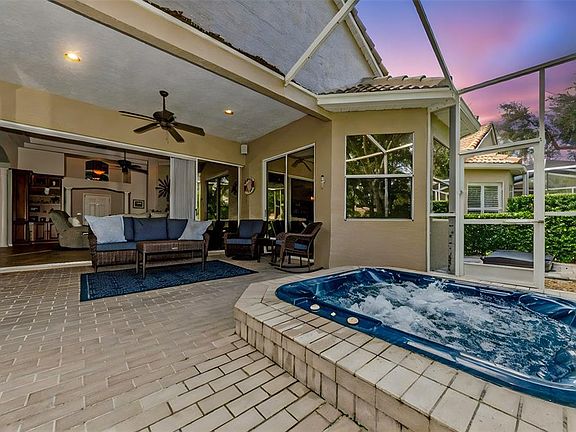 Welcome to 5163 Pinnacle Drive, a beautifully maintained residence nestled in the highly sought-after, gated golf course community of East Lake Woodlands. This exceptional neighborhood offers 24/7 security and access to the East Lake Woodlands Country Club, providing an exclusive lifestyle with golf, tennis, dining, and more. This thoughtfully designed home features 3 bedrooms and 2 full bathrooms in a desirable split floor plan layout. Ceramic tile flooring runs throughout the entire home—no carpet—offering both style and low-maintenance living. High ceilings and an open-concept design create a bright, airy ambiance, perfectly suited for both everyday living and entertaining. The spacious kitchen boasts 42-inch cabinetry, newer stainless steel appliances, and a breakfast nook overlooking the screened-in patio. The adjacent living room features a pocket sliding glass door that opens fully to the outdoor living area, allowing for seamless indoor-outdoor enjoyment. The patio itself is a private oasis with paver flooring, a covered and screened area, an inground spa, and an additional open-air space ideal for grilling and soaking up the Florida sun. The oversized primary suite includes dual closets and a luxurious en-suite bathroom with a double sink vanity, garden tub, and an expansive walk-in shower with built-in bench seating. The two additional bedrooms are located on the opposite side of the home with a shared full bath featuring a tub-shower combo, offering privacy and flexibility for guests or family. Major updates include: 2019 Roof, 2022 4-ton HVAC, 2023 garage organizers (slat wall, overhead storage, and fan), 2024 garage door opener, 2024 exterior paint, 2023 new spa equipment, 2023–2025 washer, dryer, and refrigerator, 2024 whole-house insulation and whole-house surge protection, 2023 custom built-ins in the living and dining rooms, 2023 landscaping stone and surround sound in the living room and lanai. Enjoy truly maintenance-free living with a monthly association fee that covers exterior painting every eight years, all lawn maintenance, pressure washing, Spectrum cable and internet, trash and recycling, and access to the community pool. Homes on Pinnacle Drive are rarely available—don’t miss this opportunity to live in one of Oldsmar’s most prestigious communities with unmatched convenience, security, and amenities.