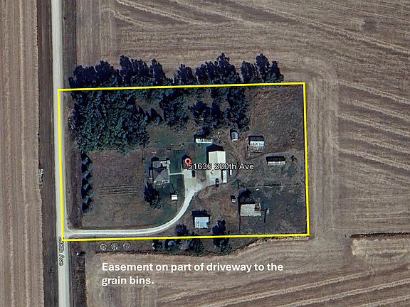 Enjoy country living on this acreage located just 1.25 miles off of highway 81 and 2.75 miles north of highway 91. This 4 bedroom spacious home on 4.56 +/- acres of land includes 22'x18' garage and a 40'x40' machine shed with fully concreted floor that includes a 12' overhead door. Also included is a outside storm shelter plus other outbuildings. Easement on part of driveway allowing access to the grain bins on south side of driveway. Update vinyl windows, gutters and roof replaced in 2021. Natural gas line to the property. Main floor laundry room.