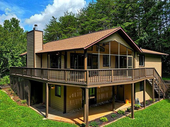Sweet!!! Remodeled perfect size 3BR home in one of areas most established neighborhoods. This Pinecrest home is only 1 mile from Brasstown Valley Resort, 3 minutes to Young Harris College & Lake Chatuge & less than 10 minutes to Hiawassee. The home has been lovingly upgraded with new floors, kitchen, stainless appliances, granite countertops throughout & light and plumbing fixtures. The lot is a hard to find gentle 0.65 acres. The main level includes the Master suite with a bath that features tile floors, shower & double vanity as well as a guest BR & BA. The Great room has a real FP, cathedral ceilings & is open to the Kitchen & Island with a sink and bar. Most of the Terrace level has been finished & has a wet bar in a bonus room as well as a huge 3rd BR with bath. There is storage on this level. Other features include a 2 car garage, wrap around deck, covered back porch & outbuilding.