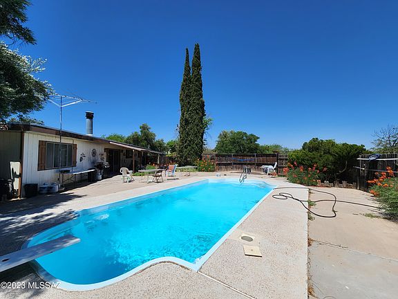 Excellent investment opportunity in southwest Tucson that includes a total of 2.23 acres, (parcel 210-27-1830 included) with all utilities. The main affixed manufactured home on Lot 73 has approximately 2050+ square feet of living space including a 2-bedroom, 2-bathroom of 1050 square feet and an addition with a large family room, fireplace, dry bar, 2 additional bedrooms and a den. If you step outside you will find a pool, pool house, barn and workshop. Lot 74 has utility hookups and septic ready for one or two more homes. There is an unaffixed mobile on the lot which will be removed at COE and does not convey. The entire property is being sold As-Is as part of an estate sale and no repairs will be made. Tenant occupied and will require a 30-day notice or new lease. Must see!