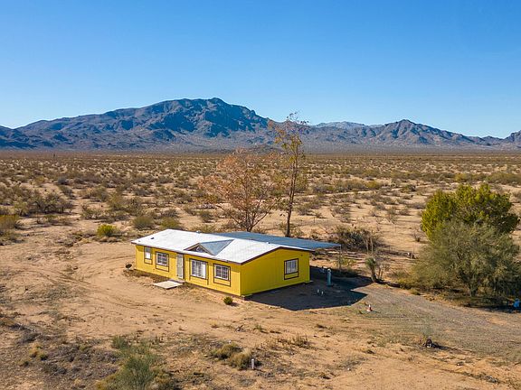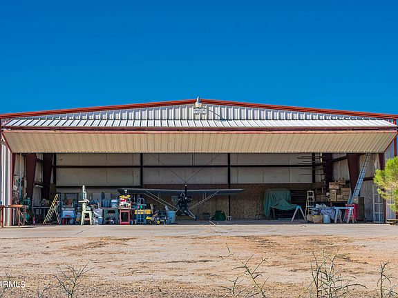 VALLEY OF THE EAGLES AIRPARK ... 6.85 acres with an AMAZING 3600 Sq ft R & M 60 X 60 Steel hangar building. Hangar has 50 AMP RV hookup, Shelving and Air compressor to convey. Very well cared for 3bd, 2 ba Mfg home with inside laundry, stainless steel appliances, breakfast nook that looks out over the beautiful Harcuvar Mountains. and a NEW A/C unit. Fly into this wonderful airpark with its 3500' X 75' dirt runway and taxi to your private hangar. Almost 7 acres on this corner lot with unobstructed views. Tons of room inside the hangar and out for all of your planes, toys, and cars. You can even have a couple of horses on this fabulous property. This quiet and peaceful corner of the desert is ideal for riding off to state land right around the corner. ** Home comes fully furnished