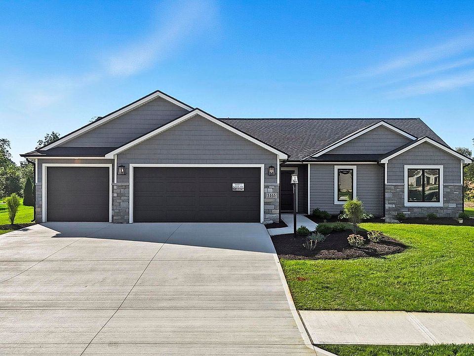 A spacious new ranch home built by Granite Ridge Builders in the Greyson Heights. This 1662 square foot home is located in Northwest Fort Wayne and in the Northwest Allen County School district. It features a wide open main living area with a cathedral ceiling and large picture windows in the great room. The custom kitchen boasts a large island and breakfast bar along with stainless steel range, microwave, and dishwasher plus quartz countertops. A large sunroom is located off the nook and can be used for as an office, playroom, or sitting room. The owner's suite has a spacious walk-in closet and private bath. The three car garage will give you room you need. The garage is painted, trimmed and has a hybrid polymer floor coating.