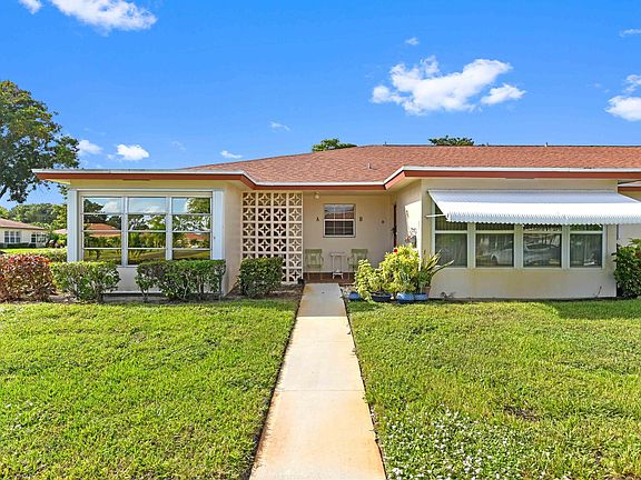 Bright and open 2-bedroom, 2-bath villa located in the desirable 55+ community of High Point of Delray. This well-maintained corner unit features an enclosed Florida room, spacious primary bedroom with large walk-in closet, and hurricane shutters for storm protection. Enjoy the private and spacious back patio, perfect for outdoor relaxation. Community offers clubhouse, pool, and active social activities. Conveniently located near shopping, dining, and downtown Delray Beach. High Point of Delray Section 7 is an active 55+ community offering residents a relaxed South Florida lifestyle with resort-style amenities. The community features a clubhouse, heated pool, shuffleboard courts, and plenty of social activities and events. Beautifully landscaped grounds create a welcoming atmosphere, perfect for walking or enjoying the outdoors. Conveniently located just minutes from downtown Delray Beach, Atlantic Avenue, shopping, dining, and the beach.