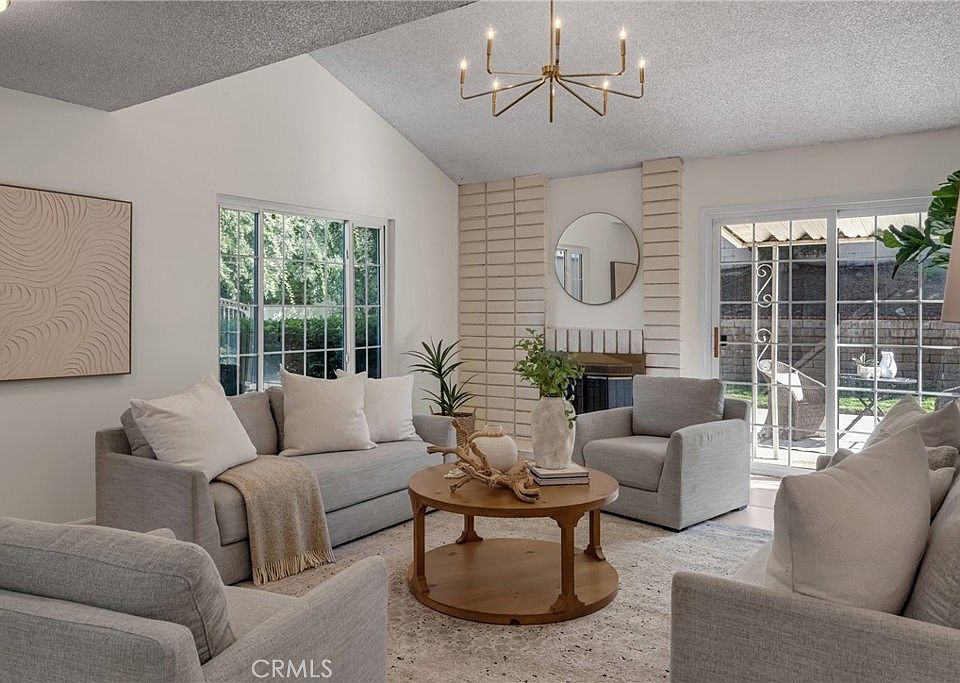 A welcoming front entry sets the tone with mature landscaping, a charming seating area, and a sense of privacy as you approach. Step inside to find a living area filled with natural light, vaulted ceilings, and direct access to the kitchen and dining spaces. Multiple sliding doors connect the home to the outdoors, opening to expansive patios, garden walkways, and shaded retreats—ideal for gatherings, quiet evenings, or weekend relaxation.