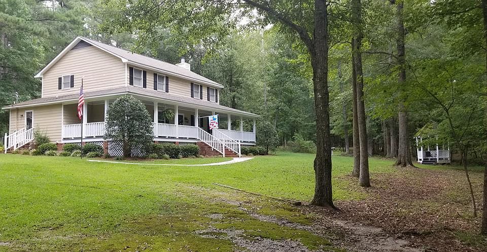 A warm family home with very large wrap around rocking chair front porch that overlooks a charming moss covered roof gazebo in the front woods. LOOK at the lot dimensions, and this property totals 1.66 ACRES, close to everything. Surrounded by a lush green lawn that evolves into your own forest on all sides. This one owner home has been well maintained and offers a few updates with very large rooms. The big open farmhouse kitchen has lots of cabinets and 3 pantries. The laundry room offers a full shower downstairs plus a separate guest bath. Massive greatroom with a masonry wood burning fireplace. The condition of the entire home does not even look like it has been lived in. All new faucets, tile floors in all baths, NEW HVAC upstairs and downstairs units about 8 years. Roof is only 8 years, new paint inside most of the home. All doors have full glass storm-doors and new hardware. Nice workshop on back of home is 15x5, with a newer electric water heater. The owners suite is separate