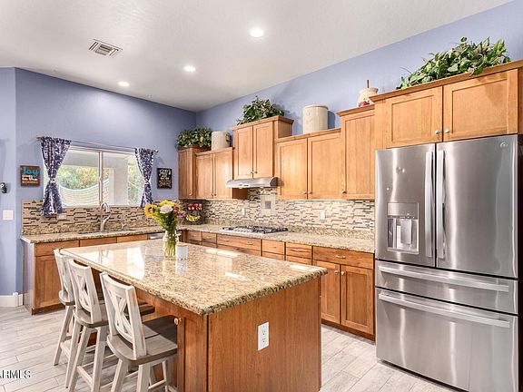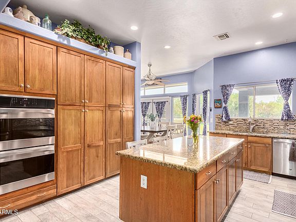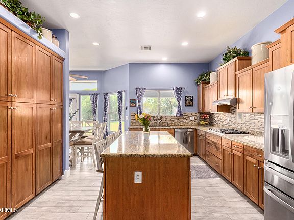Nearly an acre! Roomy floorplan. This Custom home has 5 spacious bedrooms and 2 baths. Travertine adorns the floors and walls of the master en-suite. New flooring throughout most of the home and fresh paint. The incredibly beautiful kitchen is filled with gorgeous hickory shaker style cabinets, stainless steel appliances, tasteful neutral backsplash, and stunning granite countertops. The chef inside you will be thrilled to cook up culinary masterpieces on the five-burner gas cooktop or by utilizing the double convection wall oven. The large laundry room includes lots of storage as well as space for an extra refrigerator and a utility sink (plumbing for installed).