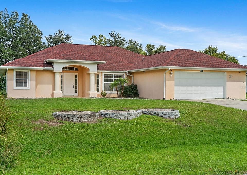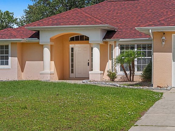 Beautifully 3 bedroom and 2 bathroom home featuring over 2,200 sq. ft. of living space with an open floor plan and high ceilings. The interior includes 24x24 marble-like tile flooring throughout main living areas, luxury vinyl flooring in all bedrooms, and spacious walk-in closets. The master suite features a large walk-in shower with floor-to-ceiling tile and a spa-like en-suite bathroom. The kitchen offers ample cabinet and counter space, breakfast nook, breakfast bar, and recessed lighting. Enjoy movie nights at home in your private theater room—complete with an LED fireplace, pro video/sound system, and cozy movie furniture included. Additional highlights include hurricane shutters, a whole-home water system, a security system, a new roof (2024), a complete HVAC system (2020), a water heater (2023), and the peace of mind of being in a no flood zone. Call today to schedule your private showing!