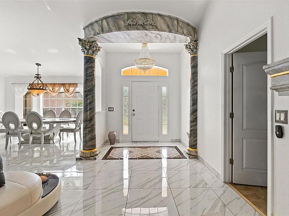 Led fireplaceBreakfast barHigh ceilingsPrivate theater roomOpen floor planBreakfast nookMarble-like tile flooring