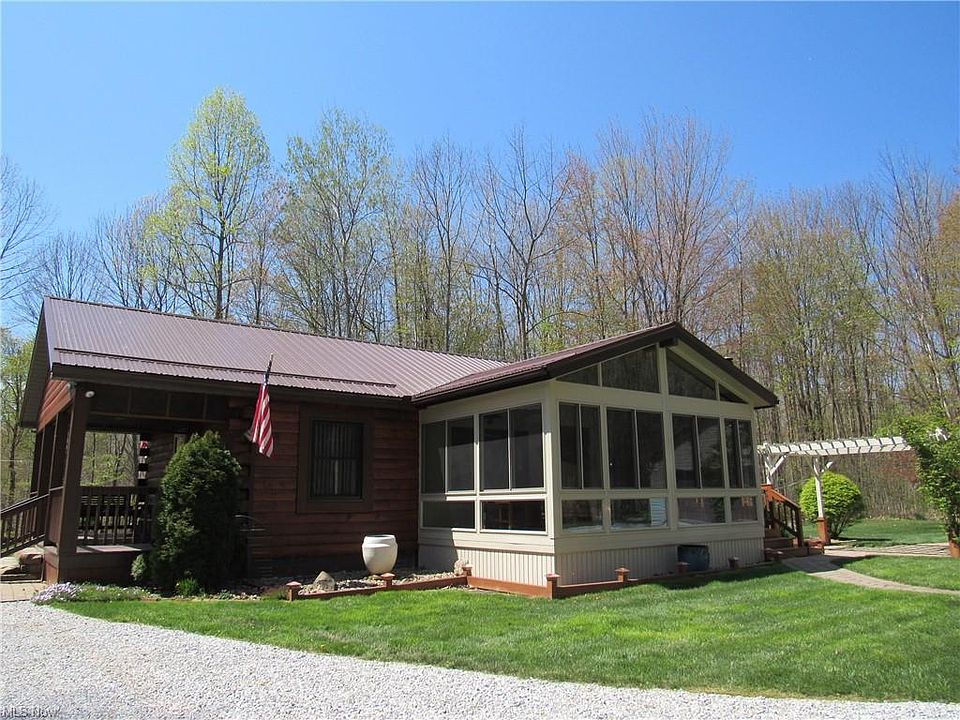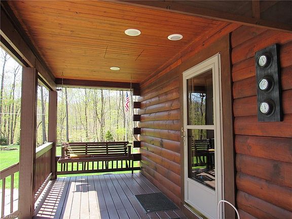 Own a Piece of Paradise ! Beautiful Log Home on 25 acres with frontage on 2 roads. Imagine the Possibilities! Perfectly Private and Serene. Stocked lake with Pavilion , Dock and Paddle boat for Summertime Fun ! This home is Quality Built and features Vaulted Ceilings Premium Cherry Hardwood flooring , 4 Season Room with Wall of Windows and a pellet stove for cozy winter days. Lovely efficient kitchen includes all appliances and solid surface counter tops. Full basement has extra height and has 2 wood ceiling rooms ready for guests rooms or office space. The Outbuildings are Spectacular ! 32X24 Garage , 10X8 shed, 20X16 barn with 20X16 Carport, 24X14 utility building plus a covered pavillion and covered lake pavillion. Sizes are approximate on the outbuildings. Parklike setting with lovely natural landscaping. This home is Move in Condition. Very Clean and Well Maintained. The whole house generator and water conditioner also Stay . Come and Take a Look and You will want to Make this Your Home !