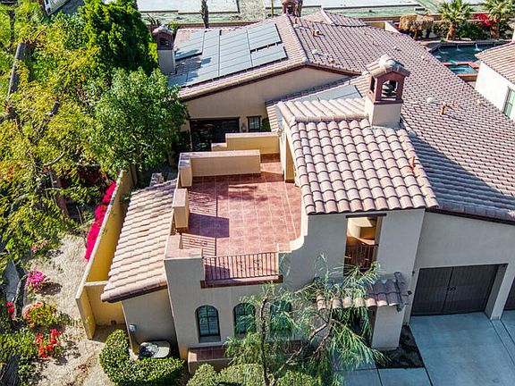 HUGE price reduction, BEST VALUE in La Quinta! Experience luxury living in the prestigious La Cantera gated community, an exclusive enclave of 59 homes designed by award-winning architect Frank Stoltz. This stunning home offers breathtaking mountain views, a sparkling PebbleTec pool and spa with a waterfall, a covered patio with stamped concrete, and an outdoor fireplace--ideal for year-round entertaining. Inside, the spacious open floorplan features vaulted ceilings, a granite-surround fireplace, a built-in media center, and a dining area with a wet bar and pantry. The gourmet kitchen is a chef's dream, complete with granite countertops, a center island, double ovens, a 6-burner stove, and a charming breakfast nook. The main house includes 2 bedrooms, an office, 2.5 bathrooms, and a laundry room. The private primary suite features an en-suite bathroom and walk-in closet. A separate casita, accessible through the courtyard, includes a kitchenette and full bathroom--perfect for guests or multi-generational living. Additional highlights include a rooftop patio with panoramic mountain views and proximity to Old Town La Quinta's unique dining, shopping, top golf courses, and world-class events like the BNP Paribas Open. With low HOA fees, this home is the epitome of desert luxury living. Schedule your private showing today!