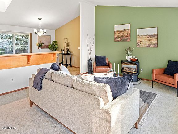 Discover the charm of this beautifully maintained 3-bedroom,2-bath home near downtown Zillah. Step inside to find a sunlit living room and a spacious kitchen, both with vaulted ceilings, perfect for gathering. The primary suite offers comfort and privacy, while the yard and patio invite you to relax outdoors. The solar panels keep your home comfortable year-round with low energy costs. This home allows small-town warmth with everyday convenience.