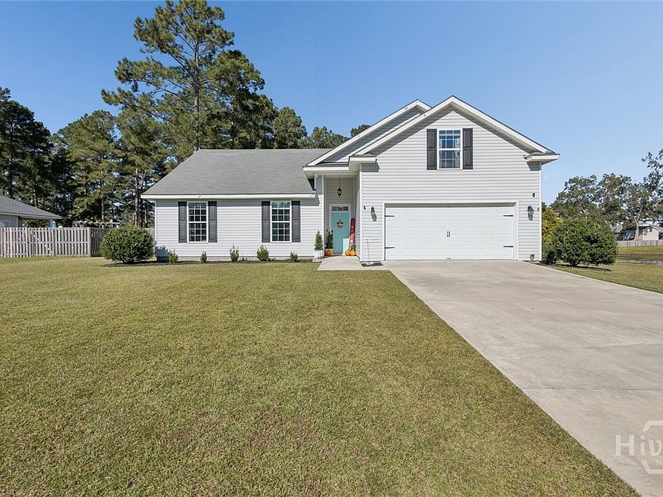 Welcome to this beautifully maintained waterfront home nestled on a spacious half-acre lot in a peaceful neighborhood in Guyton! Step inside to find a bright, open floor plan featuring vaulted ceilings, luxury vinyl plank flooring and an inviting living area with a cozy fireplace—perfect for relaxing or entertaining guests. The kitchen offers ample cabinet space, stainless steel appliances, and a breakfast bar that opens to the dining area with views of the backyard. The primary suite boasts a large walk-in closet and a private en suite bathroom with a double vanity, soaking tub & separate shower. Enjoy serene outdoor living on your covered back patio overlooking the water, ideal for morning coffee or evening sunsets. With a fully fenced backyard and plenty of open space, there’s room to garden, play, or simply unwind. Located just minutes from downtown Springfield, Effingham schools, & an easy drive to Pooler or Savannah, this home blends quiet country charm w/ modern convenience.