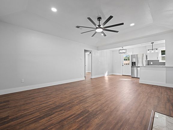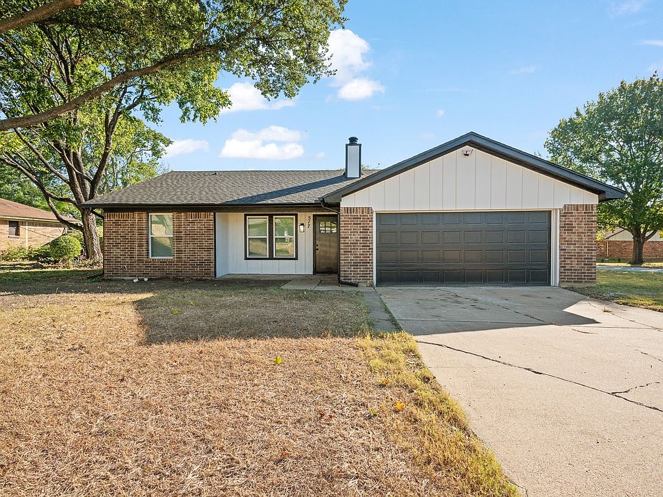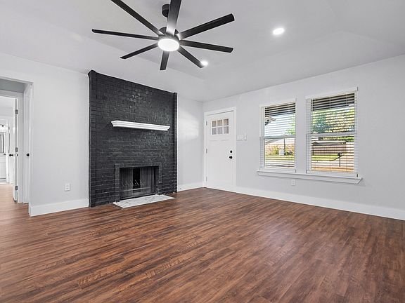 Welcome home to this beautifully updated 3-bedroom, 2-bathroom residence perfectly situated on a spacious corner lot. Step inside to find your new fully updated home, featuring new vinyl and tile flooring, and modern touches throughout. The stylish kitchen features brand-new appliances, quartz countertops, and a sleek tiled backsplash. Both bathrooms have been thoughtfully upgraded with quartz-topped vanities and tiled showers. The split floorplan offers privacy, while the open living area with a statement brick fireplace creates the perfect gathering space. Outside, enjoy a covered front patio, mature trees, a fenced backyard, and a 12x16 storage shed for all your extras. Conveniently located just minutes from shopping, dining, and Highway 35, this move-in ready home truly has it all!