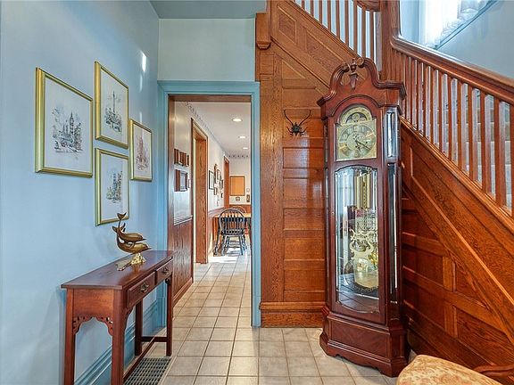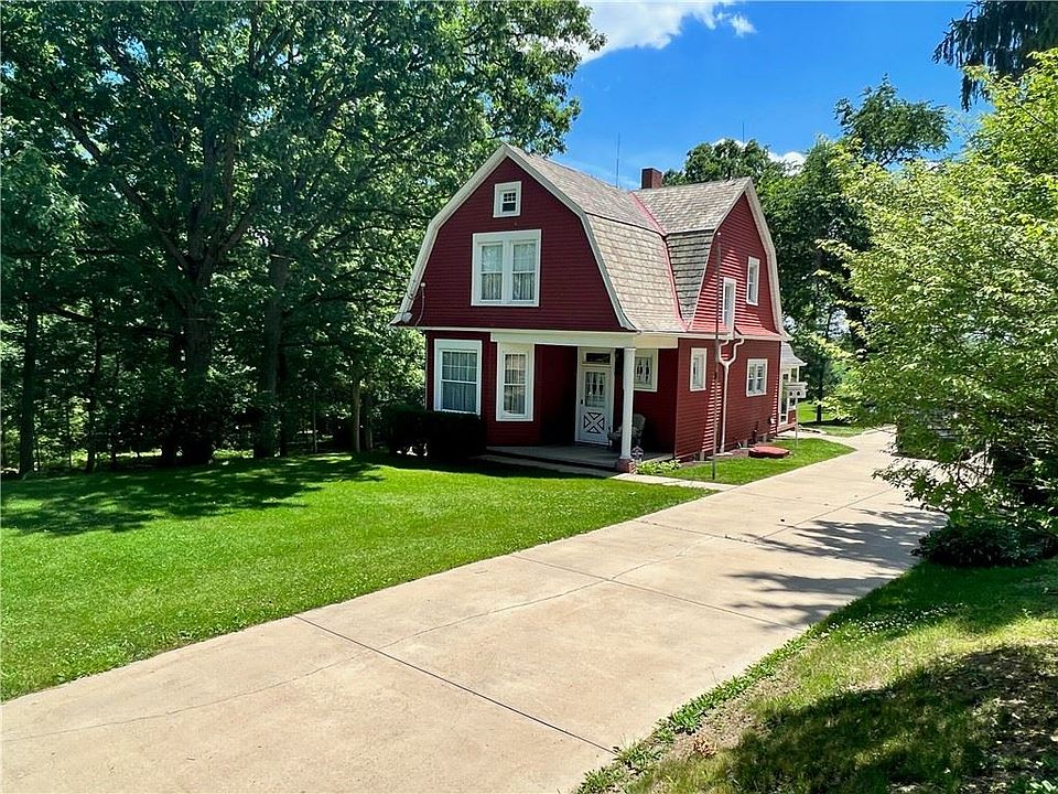Charming turn of the century 100+ year old Craftsman style home. One of the original historic homes in the area. The gambrel slate roof &covered front porch welcome you into the traditional entry where you can sit and take your shoes off admiring the original "U" style craftsman staircase & beautiful original woodwork. Upstairs you'll find 3 bedrooms & a full bath, the main floor features a formal living/sitting room with a large bay window, the DR with another huge bay window that overlooks your park-like 2 acre yard & built-in china cupboard. The kitchen opens to a large enclosed back porch that looks out over the yard to the farm. Cement basketball court & shed for storage & recreation. Finished walk out basement, cement driveway & 2 car garage. Property has been upgraded with a brand new EcoFlow septic system. Located so close to the heart of Cranberry but isolated & private by the setting. So much charm & lots of potential to expand if you want. This home is a rare find today!
