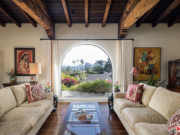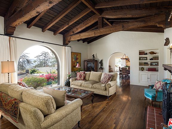 Perched on a large, mostly flat corner lot in a coveted north-of-Mountain location in Rossmoyne, this sprawling 2,600 SF one-story Spanish Villa is a rare trophy property. The home boasts commanding views of the Glendale & Los Angeles skylines. The grand living room features a soaring beamed ceiling, wood floors, fireplace, & oversized picture window showcasing the expansive vista below. Enjoy preparing delicious meals in the updated kitchen that overlooks both the city and lush backyard while your guests enjoy dining alfresco on a large covered patio. The family room is versatile, bright and open - think office, playroom or creative space. Featuring three bedrooms, the generously sized master suite has a dressing area, bathroom with beautiful original tiles plus garden and city views. A rare offering in a prime neighborhood near Trader Joe's, Whole Foods and Nibley Park. Perfect for those looking to live and entertain in a dramatic character home.