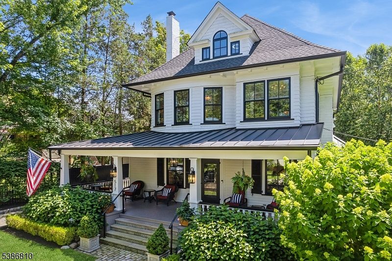 Discover an extraordinary opportunity in the heart of Westfield. This stunningly restored 1900 American Foursquare Colonial home is a rare gem that combines historical elegance with modern luxury on nearly an acre of custom-landscaped grounds, just blocks away from Westfield's vibrant downtown. Venture from your wrap-around porch to explore nearby shops & restaurants, or retreat to your expansively private backyard for the ultimate tranquility. The main house features five bedrooms, three full baths, and two half baths. The chic upscale kitchen is perfect for hosting gatherings. At the heart of the home, a conservatory flooded with natural light makes it easy to enjoy the outdoors from the inside. This distinctive family room is perfect for soaking in all four seasons, bringing a touch of nature into your everyday life. Adjacent to the main house is a carriage house dating back to 1890, rebuilt and restored in 2022. This versatile space includes a private patio, a bonus room ideal for a home gym, and a two-car garage with EV chargers. The media room on the second floor has vaulted ceilings, a wet bar, and a full bathroom. Lastly, a standout feature of this property is the decommissioned private tennis court. As one of only four homes in Westfield with this feature, the court holds endless potential - whether restored to its former glory, converted into a pickleball court, or transformed into a pool. This exquisite property is a rare find. Come see for yourself.