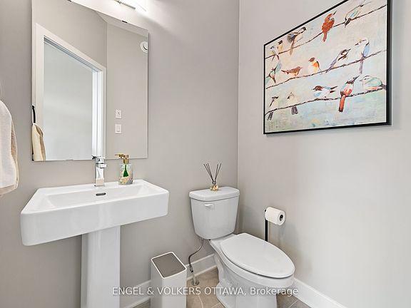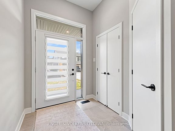 Modern sophistication meets family comfort in this beautifully designed home situated on a quiet street in Stittsville. Surrounded by new builds and close to scenic parks and schools, this property strikes a perfect balance between style, practicality, and location. The main level includes recessed lighting, wide-plank hardwood floors, and neutral tones throughout. The dining area flows seamlessly into the gourmet kitchen, which features white cabinetry, black stone countertops, a large island, and stainless steel appliances. At the centre of the home, the living room impresses with its soaring double-height ceilings, expansive windows, and a gas fireplace, creating an airy space ideal for gatherings. Upstairs, the spacious primary suite offers a private retreat with plush carpeting, lots of natural light, and a luxurious ensuite with a glass-enclosed shower, a deep soaker tub, and a quartz-topped vanity with woodgrain cabinetry. Two additional bedrooms provide versatility for family, guests, or working from home, with one enhanced by a full wall of custom built-ins. A modern central bathroom with a quartz vanity and a conveniently located laundry area with side-by-side appliances add to the practicality of this level. The finished lower level extends the living space with a bright, open recreation area perfect for a media room, gym, or play area. Recessed lighting, soft carpeting, and a large window create an inviting atmosphere. Outside, the backyard is a blank canvas for outdoor enjoyment, with sleek black and beige fencing that complements the home's modern aesthetic. Located in one of Stittsville's most family-friendly areas, this property offers proximity to top-rated schools, community parks, and extensive walking and cycling thanks to the nearby Trans Canada Trail. With quick access to Highway 417 and public transit, accessing nearby shopping and dining, as well as commuting to downtown Ottawa, is both convenient and efficient!