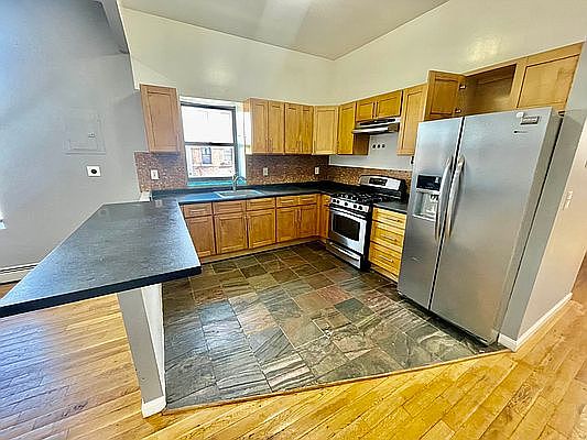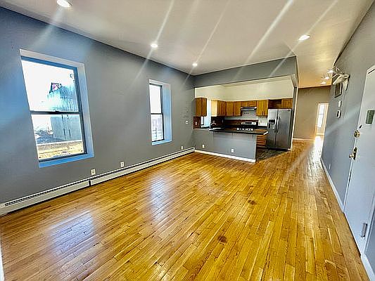 Mint condition & spacious, 2 bedroom , 2 bath apartment located on Decatur St in Bedstuy. Open layout of living space & kitchen with beautiful wooden cabinetry, stainless steel appliances & plenty of counter space, that can be used as an island & eat-in kitchen, if you may. Plenty of room to put stools & sit right there! Off of your kitchen, in this open space, is a Huge living room, with beautiful wooden floors, high ceilings with high hat lighting, & over sized windows that gives great natural light.