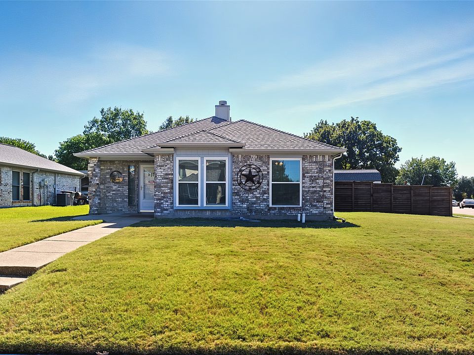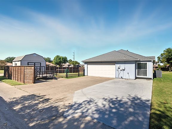 Welcome to this cozy Wylie charmer! Nestled on a CORNER LOT in a quiet neighborhood with NO HOA, this inviting 3-bedroom, 2-bathroom home offers both comfort and convenience. Step inside to find an open floor plan that flows effortlessly from the living area to the dining and kitchen, making it perfect for gatherings and everyday living. The living room is anchored by a beautiful wood-burning fireplace and features a stunning floor-to-ceiling wall of windows extending into the kitchen and dining area, filling the home with an abundance of natural light. The kitchen showcases updated granite countertops, stainless steel appliances, and plenty of cabinet space while overlooking the living area — ideal for family time and entertaining. The generous primary suite includes an ensuite bathroom with dual sinks and a large walk-in closet. Two additional bedrooms provide flexible space for kids, guests, or a home office. Outside, you’ll love the spacious, fenced backyard — private and perfect for pets, grilling, football Sundays, and entertaining. A 15x17 storage shed offers great space for lawn equipment, hobbies, or a future man-cave. The extended driveway provides extra parking and leads to a rear-entry 2-car garage with additional storage. Located within walking distance to parks and the elementary school, and just one mile from historic downtown Wylie with its local dining, shops, and small-town charm. Original owner, lifetime warranty on windows, no HOA, and zoned for highly rated Wylie ISD — this home truly has it all!