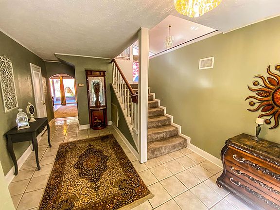 Striking rock fireplacesVaulted ceilingsWood floorsGenerous family roomFormal dining areaGame room