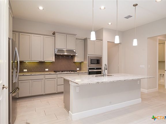 Active Lifestyle 55+ Community with all the amenities you could ever dream of! Golf, Fitness, Swimming, Pickle Ball, Tennis, Onsite Lifestyle Director, you will not run out of things to do. This stunning Texas Hill Country Design built in 2019, and has all the privacy you could imagine! Set on a cul-de-sac lot, with only 1 neighbor to your left! Gorgeous sunset views off the oversized back patio. 2 spacious bedrooms and 2 full baths, 1 1/2 bath, and a flex room that could be a formal dining or office, whatever you need it to be. Courtyard style front porch for perfect for morning coffee. Gorgeous upgrades through out with hard tile through out, granite counters and stainless appliances. Gorgeous landscaping, custom fence already installed, full irrigation system, 2 car garage, golf cart garage. Easy to show!