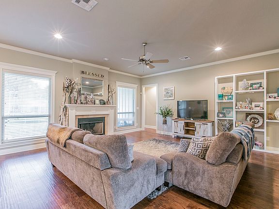 Welcome to Hunton Estates. This warm and inviting family home has everything you could need with the high-end details you want. 4 bedrooms, 3 bathrooms, office nook, formal dining, closet nook for coats, hats, backpacks and more. There is so much design with functionality, this is a Must See Now! The large kitchen boasts a huge island with lots of storage, bar overhang, built-in microwave, custom cabinets, elaborate molding, and leather granite paired with subway tile. Kitchen is connected to formal dining but also open to the nook and great room with a cozy, wood burning fireplace, natural light, high ceilings and so much space. The isolated master is large enough for the california king and intimate corner sitting area. Walk into the luxurious master bathroom, stand alone tile shower with bench, his and her vanity space, storage galore, soaking tub and impressive closet space with built-ins. Two bedrooms with jack and jill style bathroom and another isolated/private bedroom off the kitchen with a bathroom and office nook. Walk outside to the stamped concrete patio that is awesome for some outdoor grilling and entertaining with friends and family. Kids will love the large yard with playset, storage shed and an adult physical challenge set for the gladiator in you. Words can't express how amazing this home is, Call to schedule your private viewing today before it is gone.