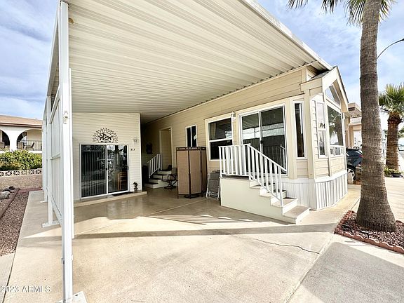 LOOK NO FURTHER.......You will fall in LOVE with this one! STUNNING 2009 CAVCO W/ AMAZING additional FINISHED Shed w/ TILE FLOORING, STACKED WASHER/DRYER, REFRIDGERATOR, SINK , CABINETS & HOT WATER HEATER! PERFECT for your guests, entertaining and hobbies! LARGE SPACIOUS CARPORT AREA W/ CONCRETE COATING makes for GREAT curb appeal! FANTASTIC RESORT LOCATION W/ NO PARK MODELS BEHIND giving an open space feeling! SOUTH FACING ideal for enjoying our LOVELY AZ WEATHER! PERFECT outdoor area for entertaining & for whatever your heart desires! STEP INSIDE this GEM and you will find a METICULOUSLY TAKEN CARE OF beauty! GORGEOUS VINYL FLOORING, AMAZING KITCHEN W/ BLACK GE APPLIANCES & YES...A DISHWASHER! STAINLESS STEEL SINK W/ RO system great for a FRESH glass of water. CONSIDERABLE COUNTER SPACE ideal for whipping up your favorites! QUALITY EVERTHING at every turn! HUGE WINDOWS, SKYLIGHTS, FANS, HIGH CEILINGS & BEAUTIFUL FAUX WOOD BLINDS! ELEGANT HIGH END FURNISHINGS & READY FOR YOU TO ENJOY! SPACIOUS bathroom w/ WALK IN SHOWER, HIGH RISE WATER SAVER TOILET & EXCELLENT CABINET STORAGE SPACE! QUEEN SIZE LIFT & STORE BED, BUILT IN DRESSER & LARGE MIRRORED CLOSET. PLENTY of STORAGE space in this one! ALL of this SET ON A FULL CONCRETE SLAB & LOW MAINTAINCE STONEBOARD SIDING! TOO MUCH TO LIST ON THIS GEM! COME enjoy our FABULOUS 55+ RESORT WHERE YOU OWN THE LAND...OWN THE FUN!