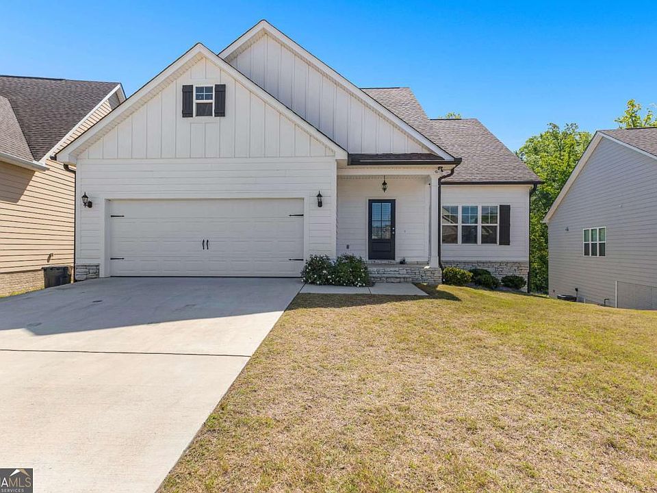 Welcome to this stunning 5-bedroom, 3.5-bath home nestled in a desirable community featuring swim, tennis, a private lake, clubhouse, and playground. With nearly 4,000 sq ft under roof, this like-new property offers plenty of room to live and entertain. Step inside to an open floor plan with hardwood floors, vaulted ceilings, and a cozy fireplace. The gourmet kitchen boasts granite countertops, stainless steel appliances, and a large island perfect for gatherings. The main-level primary suite features double vanities, a garden tub, separate shower, and walk-in closet. Upstairs, you'll find a second primary suite along with additional spacious bedrooms. Outdoor living is easy with a covered front porch, a covered back deck, and a patio overlooking the backyard. A two-car garage and a full unfinished basement provide ample storage and future potential. Conveniently located near I-85 and I-185, this home combines comfort, style, and accessibility.
