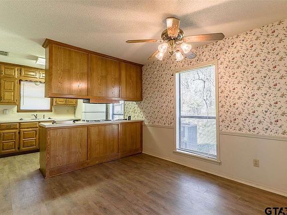 Beautiful HOME sitting on over 1/2 acre that has so many possibilities. The kitchen looks onto the large living room with a stove fireplace. Cook supper while looking out over the large backyard with a fenced in dog yard that includes a storage building on a pad. This home offers two bedrooms and one full bath downstairs and an upstairs master with its own private balcony. Enjoy the serenity of east texas sunsets on your covered back porch off the living room. Wont last long. Call today for your showing.