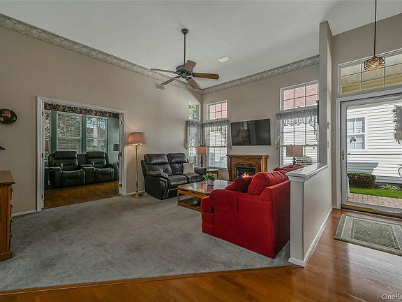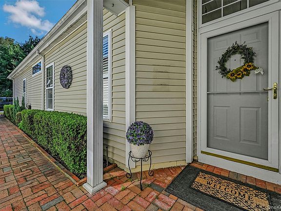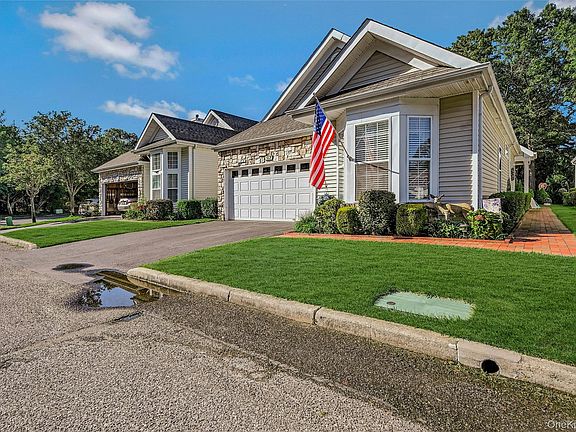 Beautiful Maidstone model in Ridge’s premier 55+ gated community—Leisure Glen. Mid-block location, neat, clean, and move-in ready. Features include a bright living room with vaulted ceilings and tall windows, spacious eat-in kitchen with sliders to covered porch, cozy den, and formal dining room. Primary en-suite offers two walk-in closets. Separate laundry room and oversized 2-car garage with pull-down attic. Enjoy a wrap-around paver patio with electric awning overlooking manicured gardens. Community amenities include a clubhouse, Olympic-sized pool, tennis, pickleball, bocce, fitness centers, art studio, billiards, auditorium, and numerous clubs and activities. Resort-style living in an active adult community. Don’t miss this one!