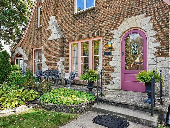 Take a step back in time with this unique stone Tudor located 6 blocks from Lake Michigan! On the main level you will find original hardwoods, archways and leaded stain glass neighboring a kitchen updated with granite counters & breakfast bar, double oven, gas stovetop and new dishwasher. The huge ceramic-tiled family room offers expansive views of the fenced back yard featuring an aggregate patio, split-level decorative pond, and lush gardens with an exotic mix of small trees, colorful plants & shade grasses. Enjoy the garden views from a tiled 3-season room with French door entry. Upper level offers replacement windows, 3 bedrooms, large walk-in hall closet, and updated bath with dual granite vanities and step-in block & glass shower. Large basement and 2-car detached garage.