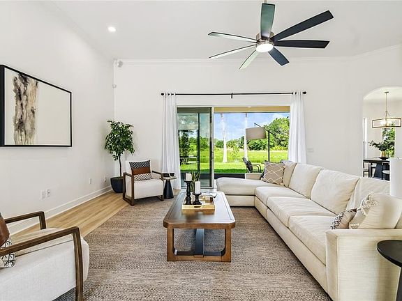 This stunning, fully REMODELED barrel tile roof Verona model offers modern touches throughout, perfectly situated across from the GOLF COURSE with serene rear WATER VIEWS and a spacious 3-CAR GARAGE.** Click on VIRTUAL TOUR link 1 to see MATTER PORT 3D VIDEO and virtually walk through this home.** Twelve-foot ceilings greet you as you enter through the elegant double glass doors, creating a welcoming entryway. Featuring 3 bedrooms, 2.5 baths, plus a DEN, this thoughtfully designed home offers plenty of space for everyone and a layout that’s ideal for everyday living and entertaining. The open-concept kitchen is a showstopper, showcasing: 42-inch cabinetry with lower drawer pull-outs, All-NEW STAINLESS STEEL appliances, Gorgeous QUARTZ countertops, polished herringbone tile backsplash AND a newly EXTENDED BREAKFAST BAR that enhances flow and functionality. Adjacent to the kitchen, the dining room features a beautiful BAY WINDOW, creating a spacious and inviting area. Luxury vinyl plank (LVP) flooring throughout (no carpet!), CROWN MOLDING, and SMART LIGHTS and FANS add a stylish touch. The PRIMARY SUITE has been beautifully upgraded with raised vanities, DUAL SINKS, quartz counters, PORCELAIN TILE WALK-IN shower, and the addition of a stunning oval-shaped free-standing tub, bringing a true spa-like feel.The addition of a LINEN CABINET provides convenience and storage space. A split floor plan offers privacy, with two additional bedrooms and a full bath located on the opposite side of the home—ideal for guests. The versatile den can serve as a 4th bedroom option, office, or home gym to suit your lifestyle. ALL bathrooms, including the half bath, have been beautifully renovated with new countertops, mirrors, cabinetry, and updated hardware for a fresh, modern look. The covered and NEWLY SCREENED lanai offers water views and lush landscaping, providing a quiet retreat to relax. Laundry room features a new UTILITY SINK. HWH replaced in 2022. HVAC replaced in 2016. WI-FI ENABLED GARAGE DOOR MOTORS. Located on a quiet CUL-DE-SAC and within easy access to the neighborhood pool, this home is truly a must-see! MOVE-IN READY and styled to impress—don’t miss this exceptional opportunity! Solivita's amenities include: - a manicured SOFTBALL diamond & field - 36 holes of CHAMPIONSHIP GOLF that can be played by joining the Stonegate Golf Club or paying as you go - 2 STATE of the Art AMENITY centers with updated exercise equipment, yoga studio & meeting rooms - 3 restaurants - 14 HEATED POOLS - 17 PICKLEBALL courts - 9 TENNIS courts - 4 BOCCE BALL courts - 4 SHUFFLEBOARD courts - 3 HORSESHOE pits - a BILLIARDS room - miles of bike paths - 2 DOG PARKS (Small & Large Dogs) - Corn Hole - Tot Lot PLAYGROUND - COMMUNITY GARDEN - over 250 resident clubs. The HOA: - maintains the LANDSCAPING & IRRIGATION systems in the common areas as well as at individual homesites - maintains the roads throughout the community - PROVIDES SECURITY with gate guards and mobile patrols including the Polk County Sheriff - allows AUTOMATED GATE ACCESS for residents via license plate readers - provides residents with Fiber Optic Internet & TV service.***Poinciana Lakes Plaza is a MAJOR NEW SHOPPING CENTER that opened directly across from the Solivita Main Gate in Summer of 2024. It features Sprouts Grocery, TJ MAXX, Ross, Burlington, Rack Room Shoes, 5 Below, Ulta, Outback, First Watch, 5 Guys, Urgent Care, Dentist, TD Bank, Petco & Hair Cuttery PLUS MORE TO COME.***