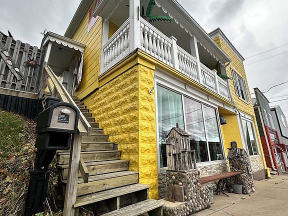 Charming 1910 duplex with storefront in the heart of Downtown Kewaunee, offering classic character and excellent mixed-use potential. This two-unit property features 3 bedrooms, 2 full baths, 2 half baths, and 2,000 sq ft of living space, plus a bonus room in the full basement. Enjoy peek-a-boo views of Lake Michigan just steps from shops, dining, and the shoreline. Property includes a detached 2-car garage, natural gas hot water heat, carpeted flooring, and durable frame/wood siding construction. Located on an irregular lot in B-2 zoning, it's ideal for investors or owner-occupants seeking flexibility and walkable convenience in a prime downtown location.